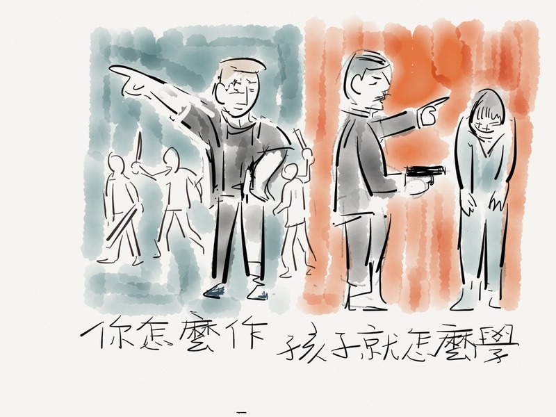 但也有像我或阿鐵這樣冥頑不靈的學生。阿鐵已屆中年, 每次進房都拒不合作,跟「老師」打架,鬧到後來都要一整個小隊的人跟他一起進去。我的反抗方式則是沉默,或將眼前「老師」當成空氣,直到下課鈴響。