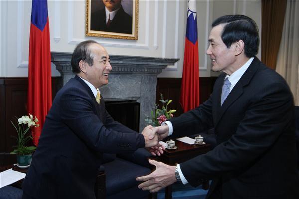 立法院長王金平3日在103國慶記者會與國慶金釵合影,並回應與總統馬英九的關係。〈photo by 總統府〉