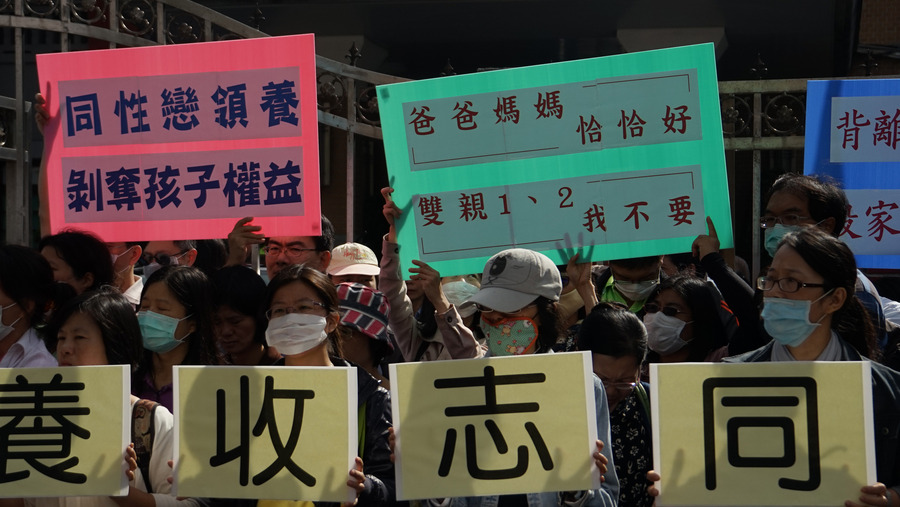 【台灣醒報記者杜胤廣台北報導】針對「同性婚姻及同志收養議題」,立法院16日上午舉行公聽會,立委尤美女邀請支持與反對方各7位代表進行討論。院外則聚集了3百多位民眾,高喊「一男一女,一婚一家」、「婚姻假平權,真毀家廢婚」、「同志收養,孩子遭殃」、「守住家庭好立委,護家人民支持您」等正反口號。
