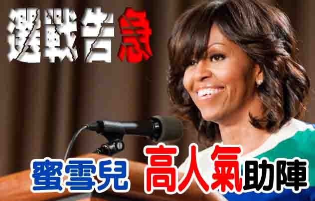 【台灣醒報記者方家敏綜合報導】美國期中選舉4日投票,民主、共和兩黨大頭過去6週來積極拉票,聲望下滑的美國總統歐巴馬打出夫人牌,派出第一夫人蜜雪兒到各地演講。蜜雪兒今年已代表民主黨出席了超過40場競選活動,曾到過邁阿密、愛荷華、緬因等州,甚至贏得比歐巴馬更高的人氣,有望逼出一向偏低的少數族裔與婦女票源。