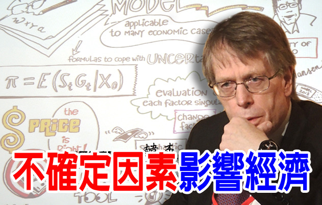 2013年諾貝爾經濟學獎得主、芝加哥大學經濟學教授韓森5日來台開講「不確定性的後果」,探討總體經濟指標與金融世界資產的互動關係,並分享面對現代經濟高度不確定性下的抉擇。