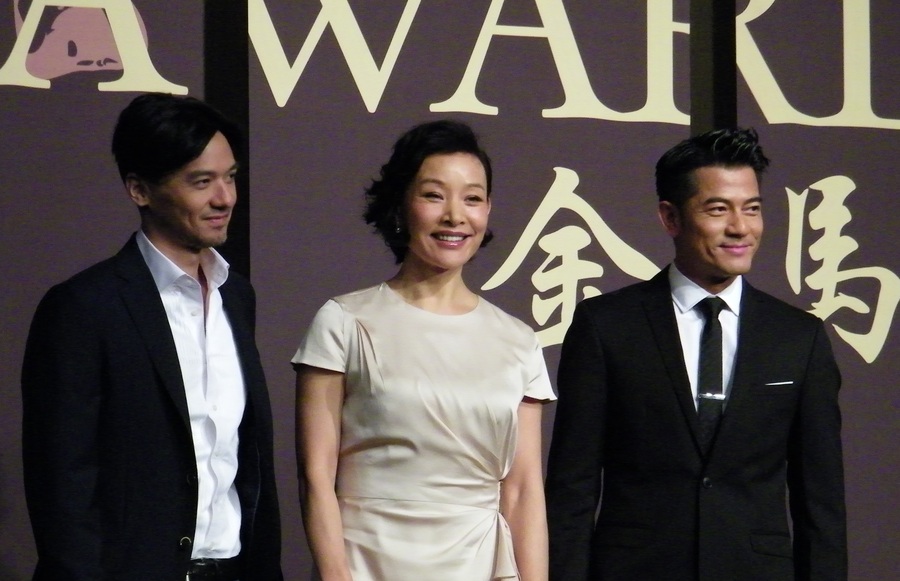 馮德倫(左一)與郭富城(右一)出席金馬評審團記者會,幽默的對答讓全場哄堂大笑。(圖中為陳冲)〈photo by 陳彥驊/台灣醒報〉
