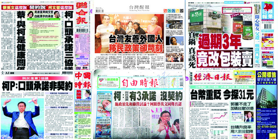 【台灣醒報記者陳昱穎報導】台北市長選戰進入倒數階段,《自由時報》、《聯合報》、《中國時報》20日的頭條不約而同指出,柯文哲矢口否認有跟民進黨簽訂契約,而只有口頭答應。《台灣醒報》則討論外國人在台灣生活的困難,雖然台灣人友善好客,但我們的制度卻是正好相反,相當嚴苛!《經濟日報》關注新台幣匯率走向;《蘋果日報》再爆食安問題。