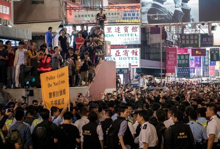 「學聯」及「學民思潮」在11月30日,將抗爭手段升級,號召數千名示威者,包圍政府總部,與警察在總部外爆發衝突。示威者約有4千多人;港警則約有3700名警力。抗爭者以自製盾牌向警方推進,警方則亂揮警棍回擊。不久港警施放胡椒噴霧、催淚水劑,甚至利用胡椒噴霧鐵罐,猛力攻擊示威者臉部,出現示威者被打到頭破流血的情況,整場抗爭出現大量傷者,約有40位民眾被逮捕。