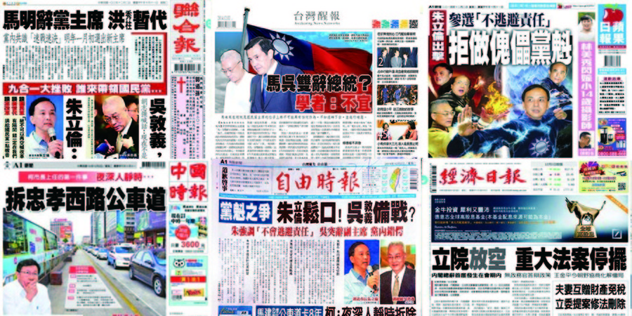 朱立倫透露「不會逃避責任」,引各界關注。《聯合報》頭條少提及朱立倫,反關注於目前國民黨主席代理職務,可望由第3副主席洪秀柱代理,並聚焦馬英九首次府院黨高層「黨政會報」提出的2大要點;《自由時報》頭條表示,朱立倫承認國民黨需要準備面對2016年政黨輪替,並細述在吳敦義提出請辭後,馬的反應和態度。