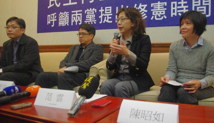 公民組合理事陳尚志強調,憲改工程時程急迫,且需有開放社會討論與全民參與的機制。在議題上應優先處理爭議性較低的公民權、政黨門檻等國會選制改革議題著手,如「公投法補正」與「選罷法降低補助門檻」等。