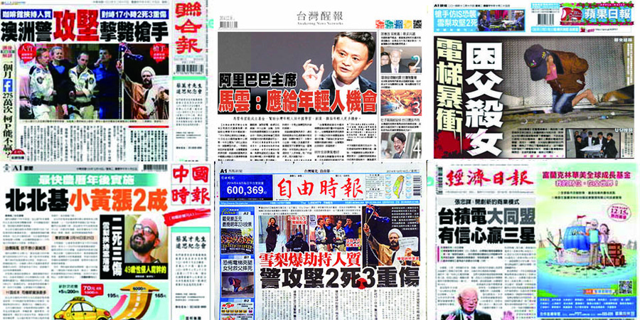 【台灣醒報記者陳昱穎報導】澳洲雪梨人質挾持事件落幕,《聯合報》指出槍手過去被控40項罪行、前科累累;《自由時報》報導槍手要求與總理亞伯特見面未果,被擊斃後,澳洲當局啟動大規模維安行動。《台灣醒報》則關注阿里巴巴主席馬雲鼓勵台灣青年到中國創業及學習。