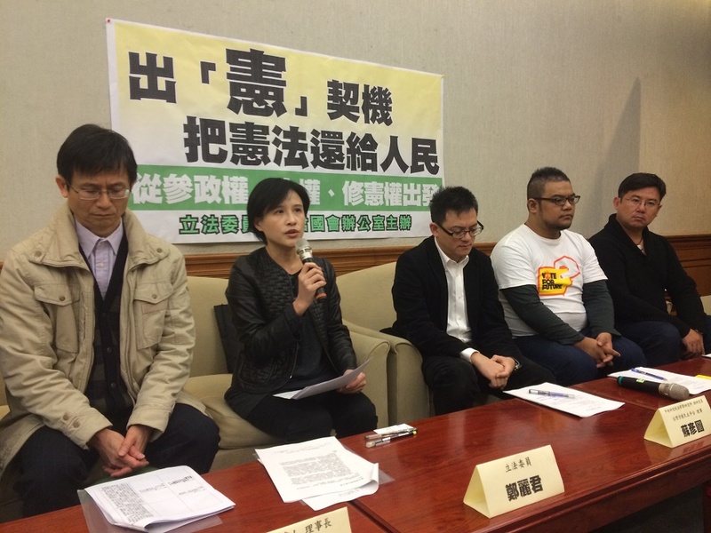 【台灣醒報記者王承中台北報導】民進黨立委鄭麗君17日召開「出『憲』契機,把憲法還給人民」記者會表示,現在社會各界對於修憲看法,都只是單純粗糙的談政府體制要改成內閣制或總統制的問題。她認為,修憲不光只有處理政黨及政治人物的權力分配,更重要的是必須與時俱進增進人民的權利。她表示,憲改應將參政權還給青年、把人權還給社會、把憲法還給人民。