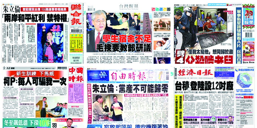 《自由時報》頭條稱朱立倫對黨產政策搞不清楚、說法不一,朱表示黨產歸零是假議題,最重要的是將黨產透明化,且會把不當黨產充公,此說引起在野黨批評,轟朱說空話、是選舉算計。《聯合報》頭條則報導朱立倫對兩岸關係的願景,指出方向必是「和平、開放和互利」,並重申修憲的必要,希望推動內閣制及投票年齡降低等。
