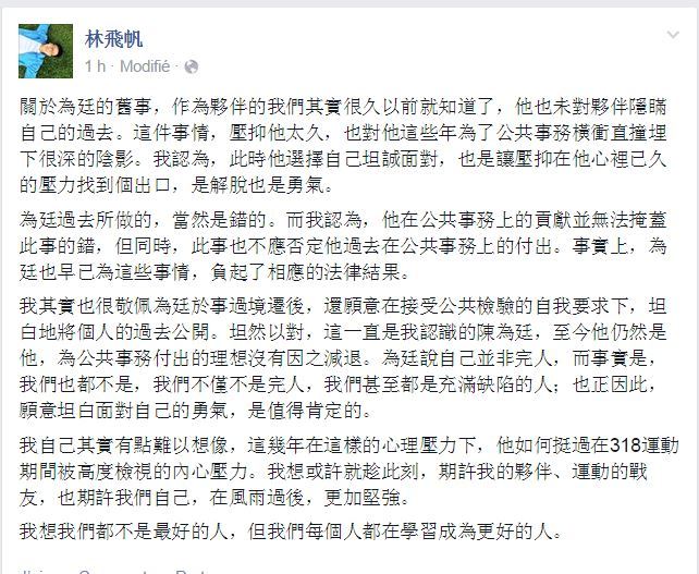 以下是林飛帆臉書動態全文: