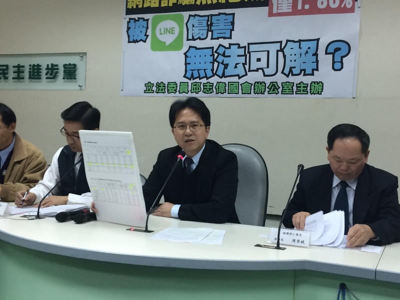邱志偉指出,隨著智慧行動裝置的普及,在台灣每1百位民眾就有75人使用Line,而Line也成為台灣網路犯罪率最高的案類。103年1月到9月,民眾因Line帳號被盜用報警次數有1778件,透過Line騙人買點數等詐欺行為有1820件,亦即平均每日會發生14件Line的犯罪案件,但破案率只有1.86%。