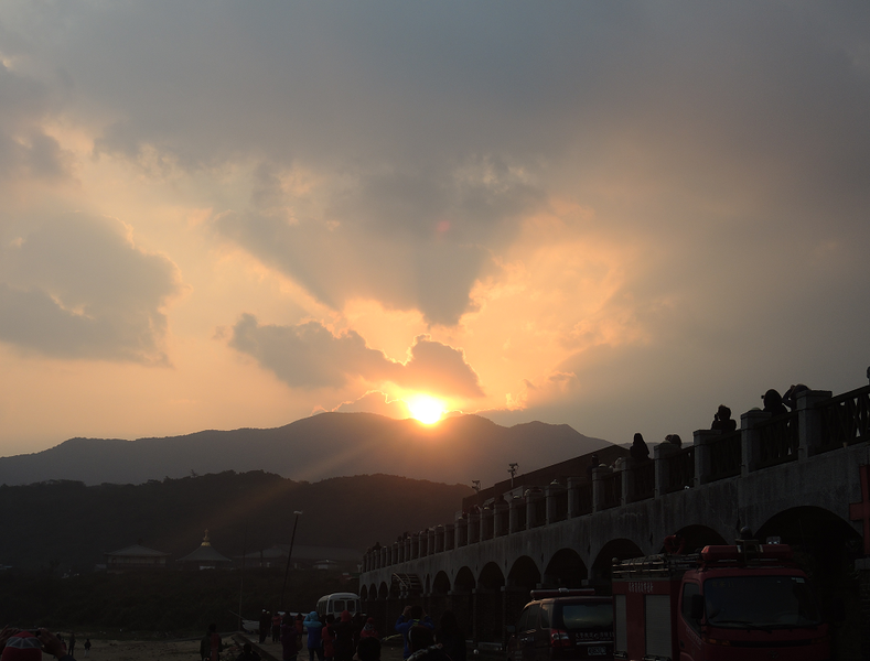 福隆海水浴場則要等到7時12分左右,才能看到紅丸似的旭日短暫現身,但不久又縮回雲層中,讓在場遊客不禁大唱盧廣仲的〈我愛你〉,「曾經在我眼前,卻又消失不見 ,這是今天的第6遍。」