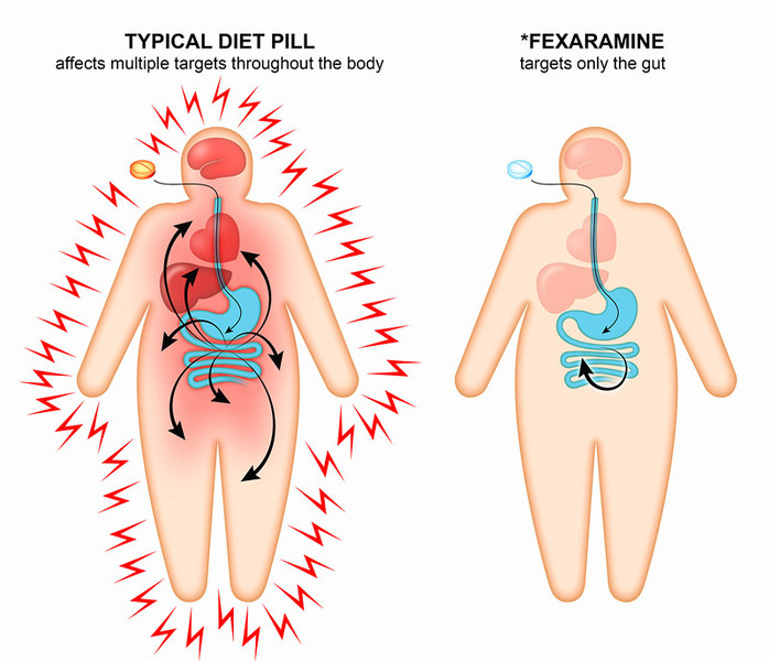 埃文斯團隊發表於《自然醫學》期刊的研究指出,多數口服減肥藥在消化、分解後,會進入血液並循環全身,但幾乎全身各部位都有FXR,若藥物的作用隨血液遍及全身,會造成高血壓、肺高壓、暈眩、失眠、頭痛、噁心、便祕、腹瀉等副作用。埃文斯表示,fexaramine僅會停留在小腸,既可避免副作用,代謝脂肪的效率還比遍及全身時更好。他解釋,FXR的運作很像「大隊接力」,「各個棒次不能同時起跑,得1步接1步才行,而小腸正是第1棒。」
