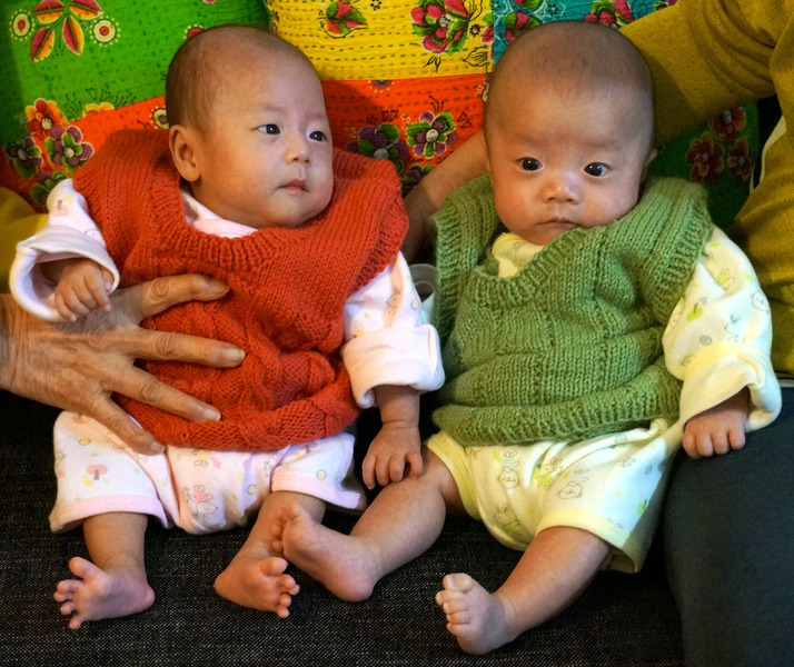 媳婦請了育嬰假住在我家,她照顧姐姐,我們照顧弟弟。可是,有時候姐姐半夜哭鬧,非得舜子出手抱哄,才能安睡,好幾個晚上,他就這樣抱著姐姐靠在沙發上,直到天亮。雖然每回他都叫嚷著腰酸背痛,可是,只要看到雙胞胎的笑臉,他又笑開一張臉,直呼「小乖乖、小寶貝」。