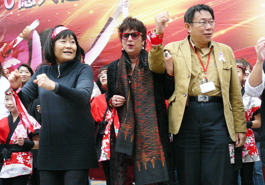 勵馨基金會與台北市12日下午共同揭開OBR「10億人起義」活動,OBR行動發起人伊芙與全球總召Monique,以及包括中、印、日、蒙、菲等國亞洲婦女代表都蒞臨現場,一同擊鼓且起舞,倡議改變父權文化、亞洲站出來。台北市長柯文哲與女權鬥士伊芙‧恩斯勒一同起舞,但舞步顯然跟不上節拍。