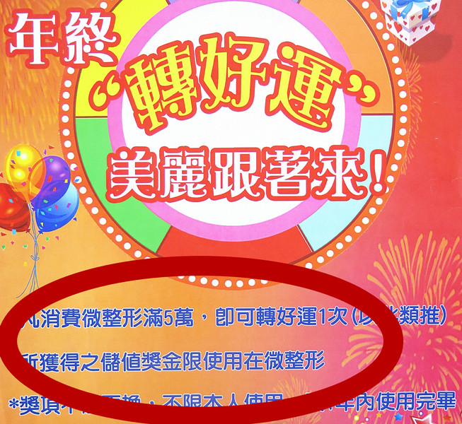 行政院消保處日前稽查全台19家知名醫美診所,結果發現,儘管衛福部早已三令五申,醫美診所廣告不符規定的情形仍層出不窮。王德明指出,以台北「亞立山大」診所為例,業者發送宣傳「消費微整形滿5萬元」即可參與「好運轉盤」抽獎活動的廣告單,提供「儲值獎金」讓民眾下次微整形時抵用;或像桃園「神話」標榜所用技術「獨步全球」;高雄「亞洲經典美學」提供「會員優惠價」等,都已違法。