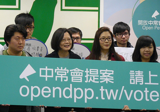 OPEN DPP開站記者會,主席蔡英文特別出席,迎接青年網友進入會議室,並向網友介紹中常會平時的運作模式和場景。蔡英文表示,民進黨雖然有許多青年黨工,但仍會懷疑我們所討論的政策是否是社會各層面所關心的,「民進黨黨齡不到30歲,但怕思想已經老化,DPP OPEN是民進黨的抗老化劑。」