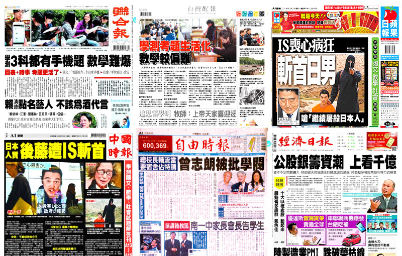 【台灣醒報記者王奕超報導】日人後藤健二遭極端組織伊斯蘭國(IS)斬首殺害,成為《中國時報》、《蘋果日報》2日的頭條焦點。兩報都報導了事件的經過與發展,但《蘋果日報》在標題上著重於IS對於日本的叫囂。《台灣醒報》則排在國際版頭條刊出,強調後藤家人願以淚水融化干戈,正向面對此事。
