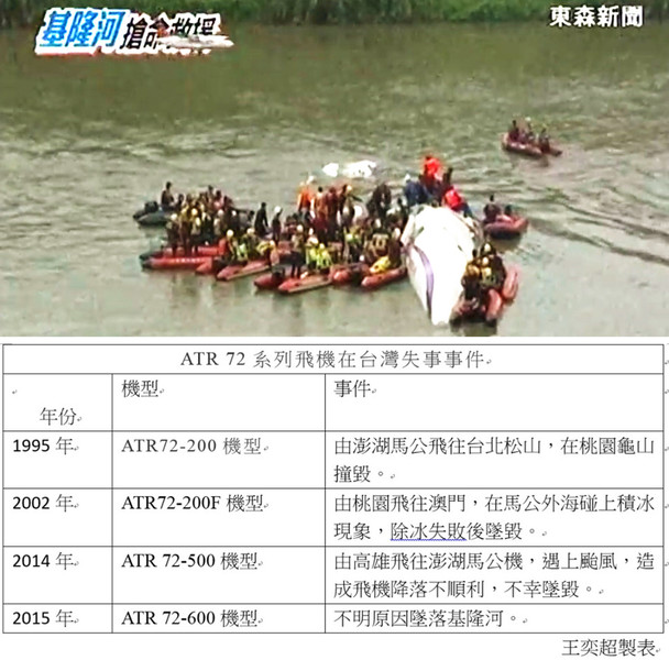 【台灣醒報記者王奕超台北報導】又是復航!又是ATR 72!復興航空ATR 72-600型客機4日上午近11時墜落於基隆河,這是國內第4起ATR 72系列客機墜毀的事件。復興航空下午,除了出面道歉,承諾全力善後,也表示將配合民航局及飛安委員的調查。至截稿前的消息,死亡人數已達31人,受傷人數 15人,失蹤人數達12人。