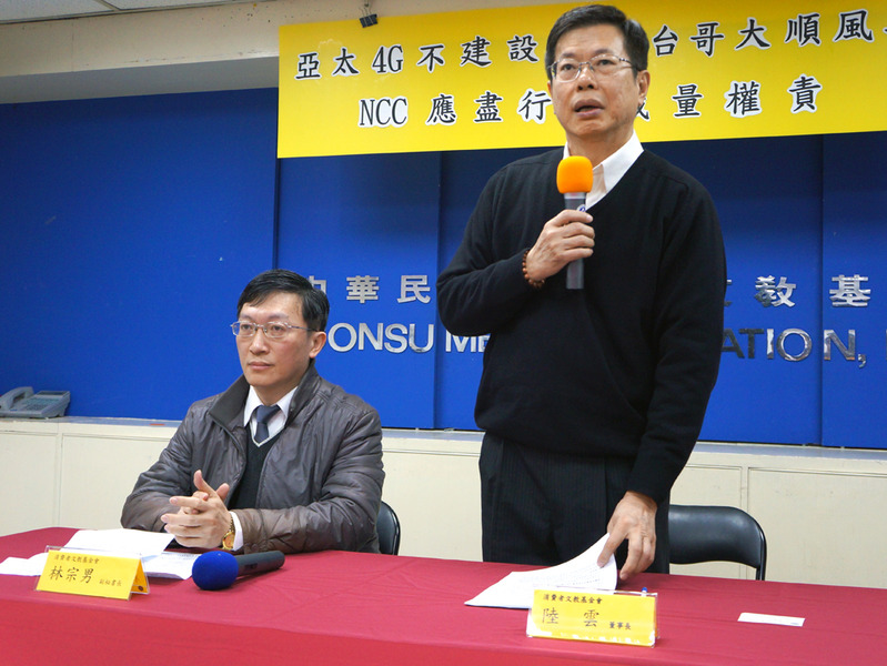上月月底,NCC駁回了亞太和鴻海旗下國碁電子合併案。林宗男9日指出,4G是我國產業的關鍵競爭力,建置速度已落後於世界排序百名之外,而亞太電信卻不努力建設,只企圖靠公司合併或轉賣來獲利,NCC應予以規範。消基會董事長陸雲說,「頻譜是公共財,而且具有稀少性。稀少的公共財是要為全體國民謀取福利,不是讓廠商透過轉售而獲得暴利。」