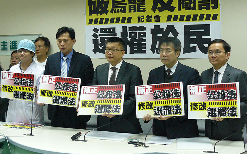 民進黨立法院黨團5日與公民團體割闌尾計畫、410還權於民運動工作小組聯合召開記者會,呼籲國民黨在立院新會期不要阻擋公投法與選罷法的修正法案。民進黨中常委蔡其昌表示,民進黨將選舉罷免法與公民投票法的修正列為本會期優先處理的法案,呼籲國民黨「回頭是岸、朝野合作」,不要再阻擋公投法補正和選罷法修法。