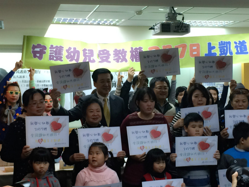 林佩蓉進一步呼籲,「班級規模要變小,老師素質跟專業要支持保障。目前只有台北市堅持好老師、好品質的政策,3歲到6歲孩童有2位教師,師生比例也降低至1比7。」托育政策催生聯盟專員陳竹儀表示,原先版本強調承辦團體具有公益性質,而行政院推動的版本是假公濟私,將政府資源開放私人進場。