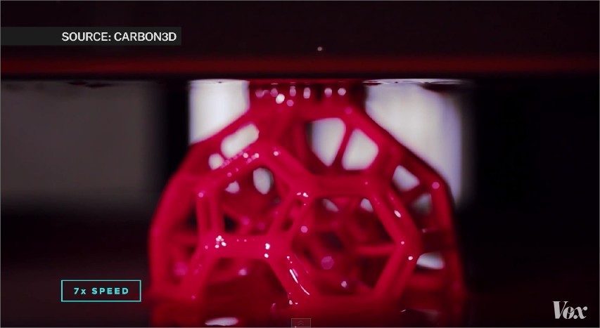 當被指定為固態聚合物的素材被平台拉起後,在通過液態池中的氧氣層與聚合物交界帶的「死區(脫氧層)」時,只要被紫外線照射到的區域便會逐漸凝固,而未被照射的區域則能因氧氣阻隔而維持液態,讓物體能以「一體成型」的方式來塑型。研究人員喬瑟夫德西蒙表示,雖然這款列印設備仍只是原型,但預計在1年內可望上市,勢將一改不少人對於3D列印「曠日廢時」的印象。