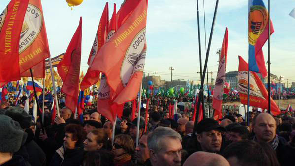 本月18日大批民眾也聚集在莫斯科,大舉慶祝入俄一周年,不少民眾手持標語,感謝俄羅斯接納。(photo by@InstaKPbIM on twitter)