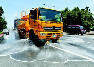 同樣也使用回收水,高雄市環保局以「放流水」洗街,既環保又省水。環保局長鄒燦陽受媒體訪問指出,以污水處理廠的放流水來洗街,將不會與民生用水衝突。環保局空噪科長鄭嵐也說,使用放流水洗街能減少排碳,2014年度平均每天節省約107噸用水量,若依每度水約排碳0.2公斤來計算,每年將能減排7,776公斤的溫室氣體,不但能減少街塵累積,又達省水、減碳效果。