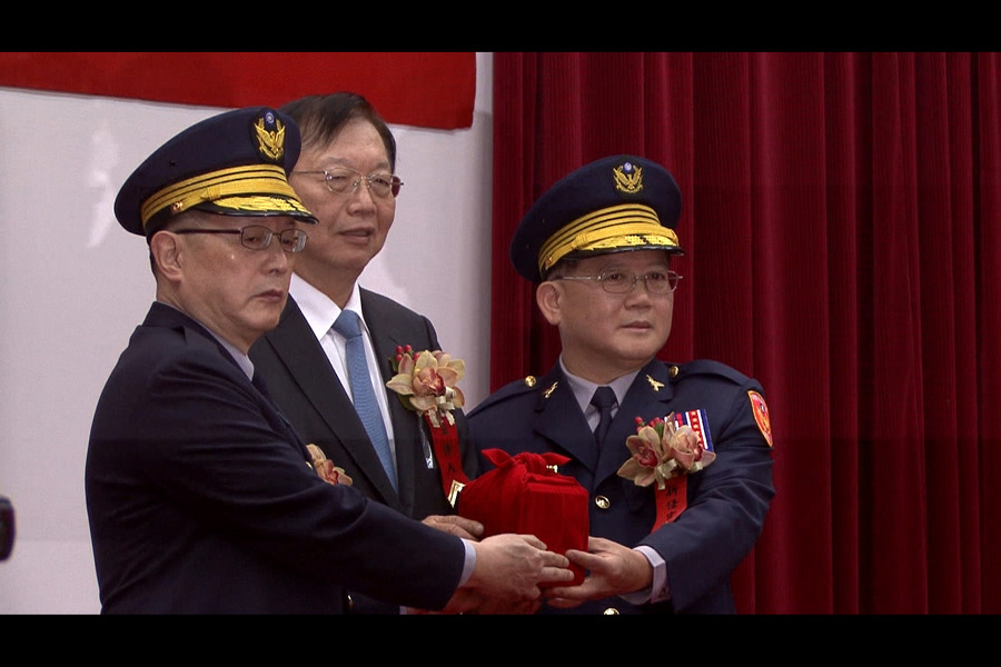 內政部長陳威仁(中)監交印記給新任警政署長陳國恩(右)。(photo by 林上裕/台灣醒報)