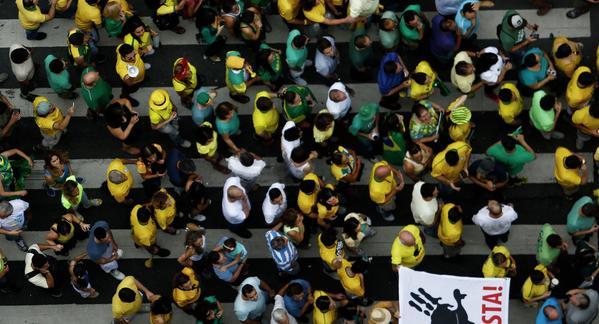 【台灣醒報記者方家敏綜合報導】因不滿總統羅塞芙的社經政策,上百萬巴西民眾12日在全國各地抗議,批評政府與石油公司掛勾收賄,要求彈劾羅塞芙。自從3月初巴西最高法院查出執政黨貪腐案以來,第2度連任的羅塞芙簡直「晚節不保」,支持率只剩13%,且有高達63%的民眾希望她下台。