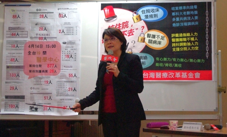 醫改會執行長劉淑瓊表示,國內急診需求及嚴重度並未增加,急診等床問題卻加劇,且愈須緊急治療的患者,滯留率反而愈高,將可能因併發症致使診療期增長,並為其親屬、求診醫院增加更多的醫療成本。