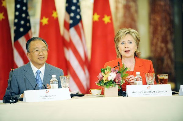 這種種「不高興」正是兩國間的歧見,不過兩國都知道要好好管控歧見,所以她就任國務卿後,首次出訪的目的地之一就是中國。她一方面主張結合亞太盟邦共同因應崛起之中國,一方面也主張擴大美中關係,「歐巴馬與我都清楚表示要與中國發展積極與合作的關係」。她還曾經引用中國成語「同舟共濟」,說兩國如果朝著不同的方向划,可能「很不幸地引起動亂和渦流」。