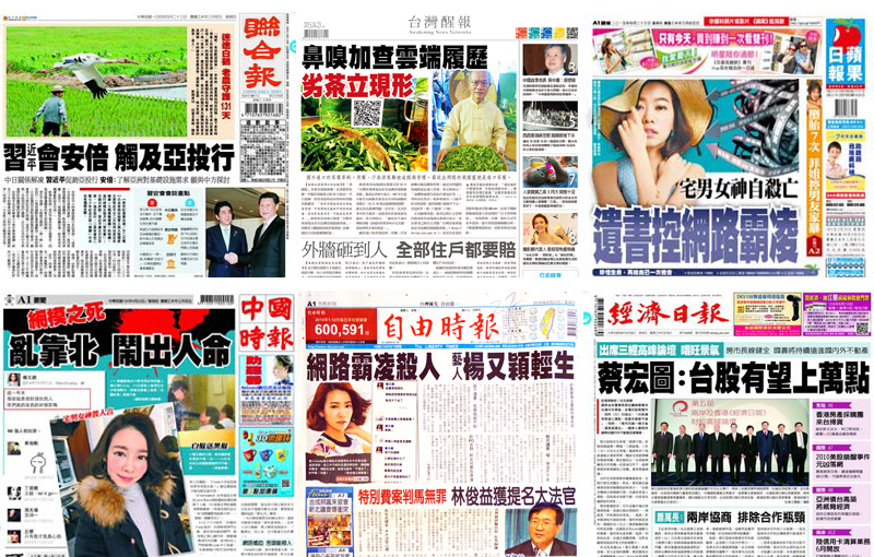 【台灣醒報記者張禹宣報導】前農委會主委彭作奎的24歲藝人女兒楊又穎輕生成為《自由時報》、《蘋果日報》與《中國時報》23日頭版頭條。《自由時報》頭版頭條報導楊又穎疑似吸氦氣自殺,在遺書中提到,因工作不順又遭受同儕排擠,網路酸民霸凌,而萌輕生念頭。