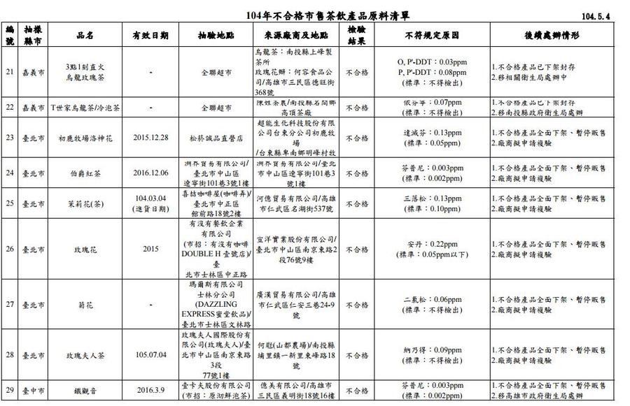 最新「毒茶」名單一覽