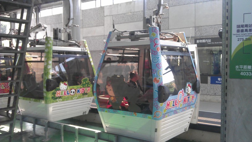 台北捷運公司29日上午推出貓空地區的走春活動,將所有纜車分別彩繪成4款不同凱蒂貓造型的專車,民眾可在春節期間看圓仔,搭凱蒂貓纜車,到貓空遊山玩水。(Photo by 杜胤廣/台灣醒報)