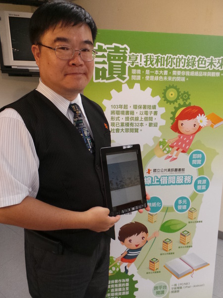 環保署19日舉辦「『讀』享!我和你的綠色未來」記者會,環保署綜合計畫處處長朱雨其表示,以往政府出版品礙於出版數較少,年久後容易「絕版」,不少民眾反應為了研讀相關資訊而費盡苦心尋找實體書本,因此特與國資圖合作,將現行所有環保書籍委託再製成電子書,以虛擬圖書館的形式,方便民眾以電子載具就可廣泛閱讀。