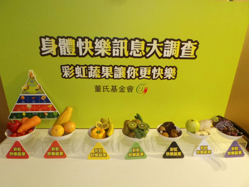 衛福部建議,國民每天飲食中應攝取2份水果,但董氏基金會營養組主任許惠玉舉調查說,全台有88.6的民眾每天吃不到2份水果,甚至有1成民眾以為吃蔬菜就夠了。呂蕙如提醒,要讓身體「快樂」,可依照紅橙黃綠黑白紫的彩虹蔬果形式,選擇番茄、柳丁、香蕉、奇異果、木耳、白蘿蔔與葡萄等水果,並配合當季營養CP值高的種類,攝取膳食纖維、多種多酚、維生素、礦物質及營養素。