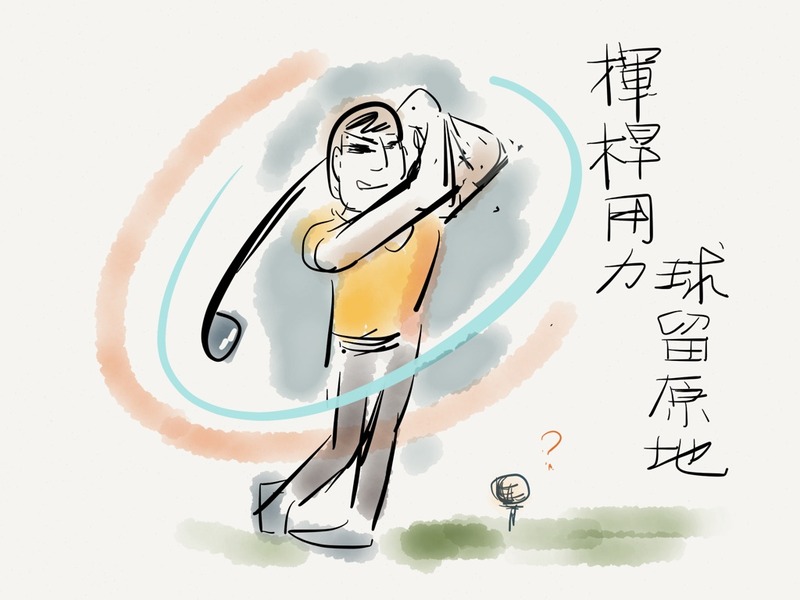 眾人矚目下,一個西裝筆挺的中年人拎著球趕上台。「這裝扮不適合打高爾夫吧?」我問死黨,但他只是笑笑,指著台上要我仔細看。在應該擺著一顆球的基座上,空無一物;當球評聲嘶力竭地介紹這號「首長」的人物時,他已經全神貫注地擺出揮桿姿勢,身體拉高。猛然的一擊。
