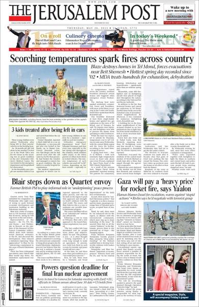 以色列近日溫度不斷飆高,平均氣溫衝上38度,部分地區甚至達44度高溫,是1970年以來第2熱的5月天,其中又以中部城市溫度最高。以色列普遍高溫導致全國多處起火,除有森林大火,還波及多個住家、商家,不少民眾在政府指示下撤離家園。東部的特拉蒙,至少有3間民宅無故起火與2起瓦斯爆炸意外。