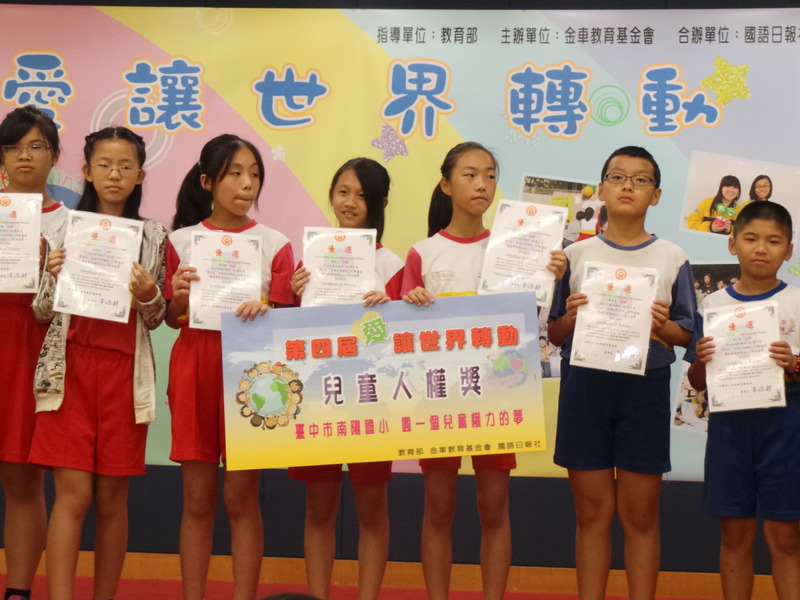 來自嘉義北園國小的「新台灣之子」,由於從母親那邊瞭解了柬埔寨等國家的風俗民情,體會到他們因貧困而缺乏教育,利用烹飪營學得的自製料理進行義賣,將愛心傳回「母國」。台中市南陽國小的小朋友,藉由諾貝爾和平獎得主馬拉拉知道了「世界兒童人權日」,在校園及社區內發起一連串的兒童權利公約連署。