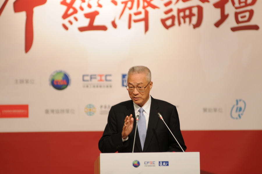 談到兩岸經濟,副總統吳敦義表示,台灣出口中國已占總額的近40%,他回想起自己擔任行政院長任內推動兩岸簽屬ECFA,這幾年逐見成效,他引用數據指出,ECFA有涵蓋的早收清單的539項產業,平均成長率達36%,未納入ECFA的7千多項,平均成長率只有6%。