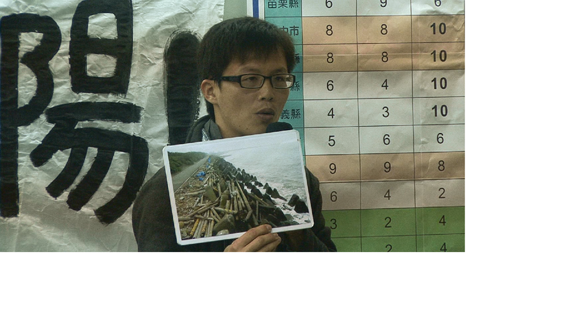 「政府沒有善加取締工廠排放廢水是不爭的事實,許多工廠可能正暗中建立汙水管線,排放廢水,日月光事件只是冰山一角。」黃俊男指著桃園、新竹拍攝的綠牡蚵指出,他與台南社大檢測事業廢棄物採集出的樣本,發現西海岸有多處重金屬超標,甚至多處沙灘成為垃圾掩埋場,一方面是海流影響,一方面也可能是垃圾掩埋場蓋在海灘附近未善加處理,導致每逢颱風過境,垃圾便漂流至海中。