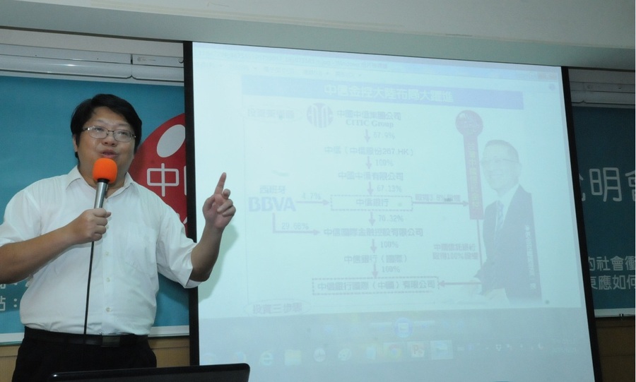中信金控5月26日宣布,將與大陸中信集團參股策略聯盟,成為兩岸金融業雙向參股合作首例,中國中信集團將透過私募案入股中信金控3.8%,中信金控子公司也將100%併購中信集團下的中信銀行國際,藉此縮短3年的登陸時間。但看在經濟民主連合召集人賴中強眼中,認為「這是一間有中國官方背景的中資企業,明目張膽入股台資銀行。」