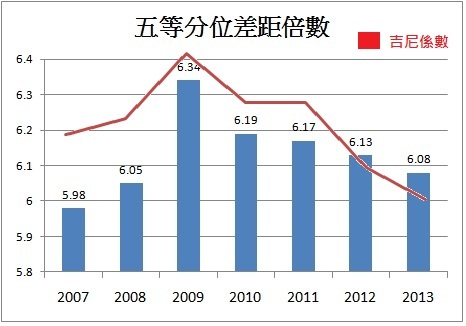 【吉尼係數逐年下降】