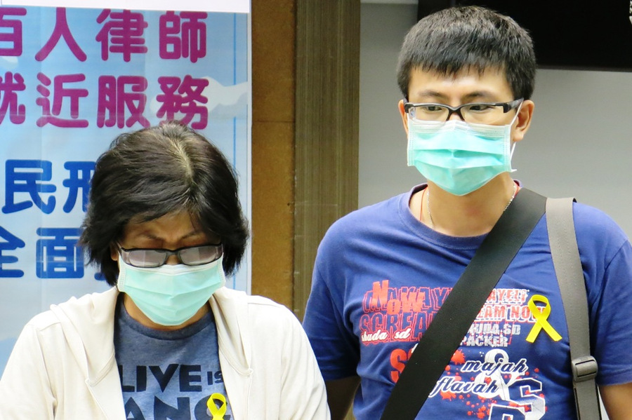 法扶基金會6日舉辦百人律師團助受害者控訴八仙塵爆記者會,在現場八仙受難者林誼的兄長林大哥代表所有受害者簽下專案申請書,並別上黃色絲帶,象徵為還在跟死神拔河的傷患祈福。林大哥表示,「大多數傷患家屬都在專心照料家人,根本沒有心思可以究責。」他認為不只民間,中央政府也該扛起責任,為受難者討回公道。