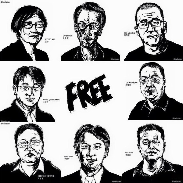 遭刑拘的7人中,有6人為處理人權案件著稱的鋒銳事務所成員,包括律師王宇及其丈夫包龍軍、事務所主任周世鋒、律師黃力群、王全璋,以及行政助理劉四新。另一名廣州律師隋牧青更被控「煽動顛覆國家政權罪」監視居住。