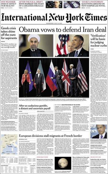 歐巴馬15日凌晨在白宮召開記者會表示,這個協議並不是建立在信任上,而是監督。國會有60天的時間討論此協議,將會引發國會兩黨的激辯,共和黨已揚言,將在國會封殺此項協議,但歐巴馬強硬回應,「若國會封殺協議,我會動用否決權。」