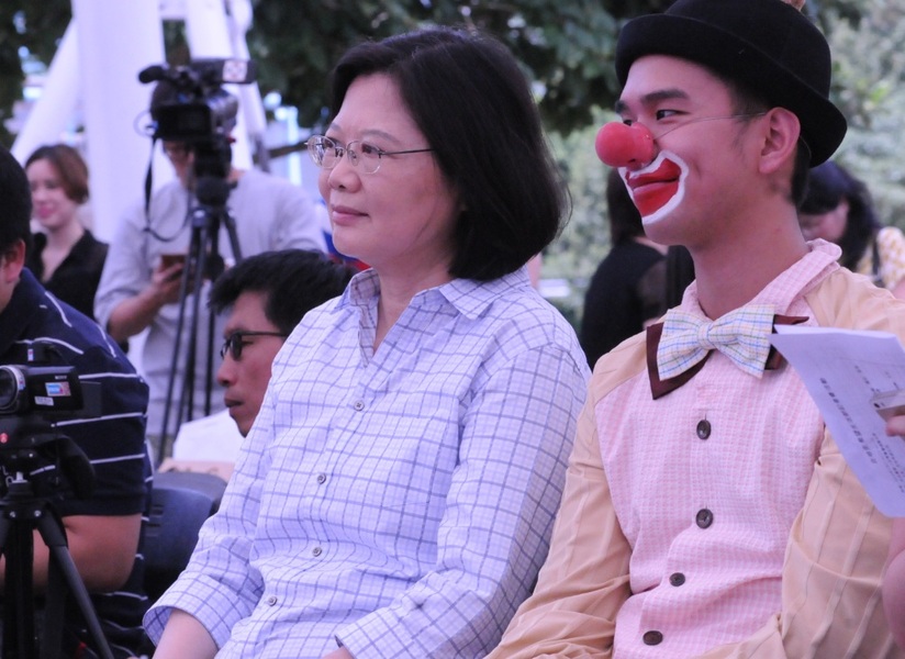 「0725在地希望生活節」記者會,現場有去年在墾丁春吶走紅的獨立樂團「Nasyy」、常與其他農業、創作團體「貳伍零壹」等表演,蔡英文也與表演團體一起折氣球,折成一把機關槍「出征」。