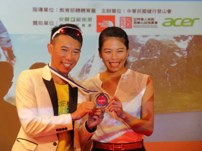 我國超馬好手陳彥博月初在挪威160km Non-stop超馬賽中,克服種種天氣地形的逆境,以及生心理的煎熬,勇奪賽事第2名。陳彥博在23日返國記者會上帶回賽事的獎座與獎牌,與他的啟蒙教練潘瑞根,以及超級好朋友、網球一姊謝淑薇,親手為他戴上獎牌並獻上講座。